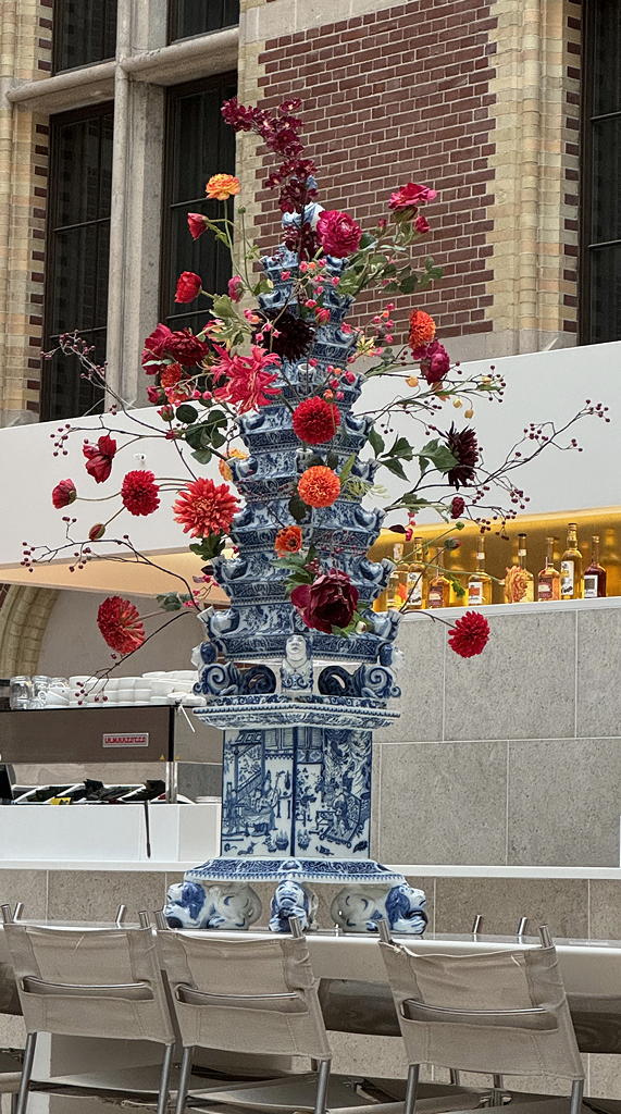 Thank goodness for in-room espresso! Someone would have died if I hadn’t tanked up before the breakfast buffet. The buffet did a good job of filling the void so I could pretend to be human and get away with it! The concierge directed a zombie (me) to the tram line, a whole 3 minutes walk away from the hotel. Buying a 96 hour ticket was easy through the GVB app; I activated my GVB ticket with the hotel wifi and I was all set to go. You have to scan you ticket going into and coming out of the tram, bus, metro station – there must be some sort of distance/region charge. Using the ticket was a bit of pain since my phone kept wanting to pay for a new ride via Apple pay even when I was scanning out of the tram – never did figure out what setting to change. A tram to Amsterdam Centraal followed by a metro ride to a subway station near the museum went smoothly. The trams and the metro were quiet in the morning; people didn’t talk or used library voices. It wasn’t like the Boston trains where, depending on the line, you might have to shout to be heard by the person next to you. Oh, I did witness minor traffic jams in the morning as I waited for the museum to open. At some intersections, I frequently saw a clot of 12 – 15 bicycles on a road with a yield sign, waiting for a gap in the bicycle traffic to make a turn or cross a rotary. That’s an Amsterdam traffic jam! There are more bikes than people in Amsterdam and most people appear to ride their bike to work, even the trams have bike areas on board or entire bike cars depending on the line. It all makes for a much quieter commute in the morning.