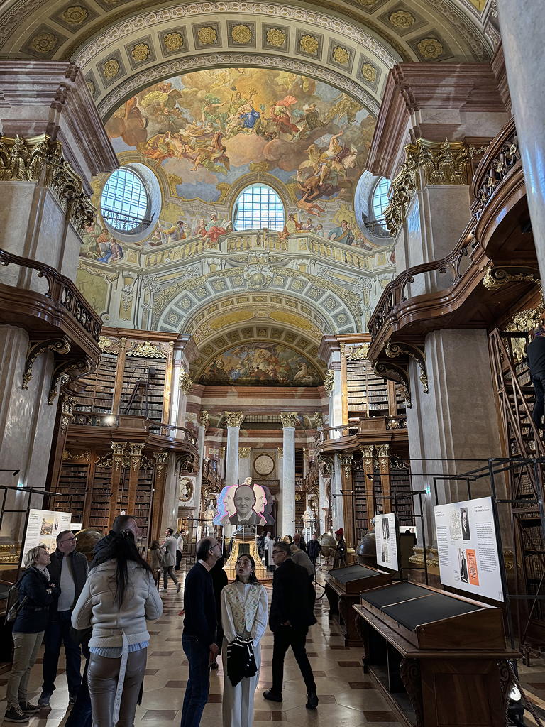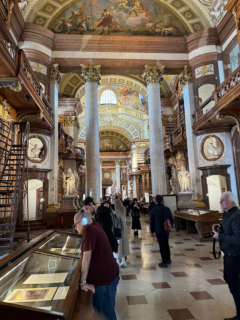 March 19th was a good day. I took Big Bus tour to the Opera/Albertina stop then walked the short distance to see the Austrian State Library. The library was preparing to have a special exhibition on Anton Bruckner, so there were a number of partially completed exhibits. None of that took away the beauty of the space.