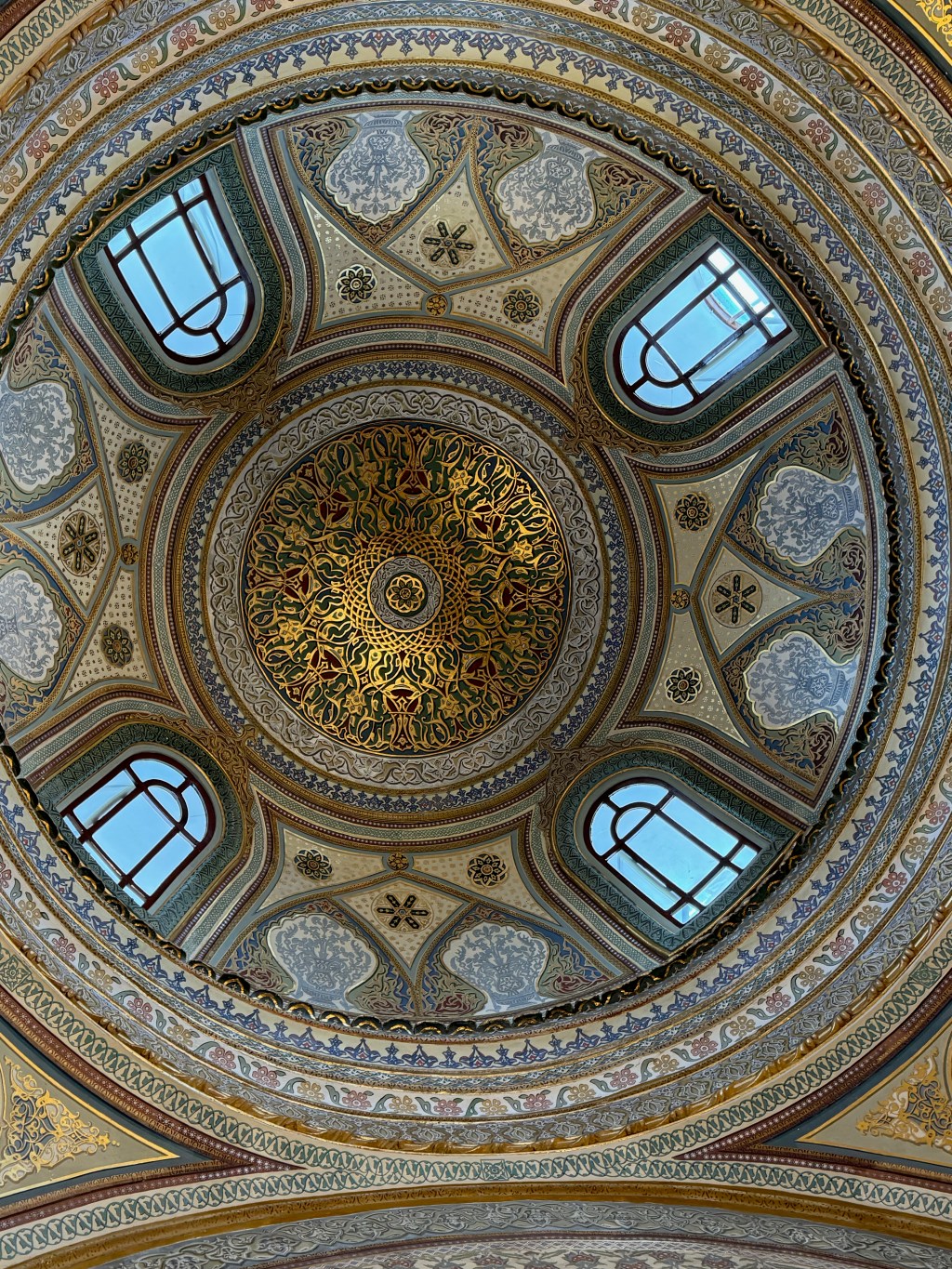 I took a lot of photos of the collection including items like the emerald dagger (featured in the movie Topkapi from the ‘60s), the footprint of Mohammed and Moses’s staff; items like these were gathered from sites throughout the Ottoman Empire and given to the sultan and his family. We did not discuss the provenance or authenticity of the displayed items.