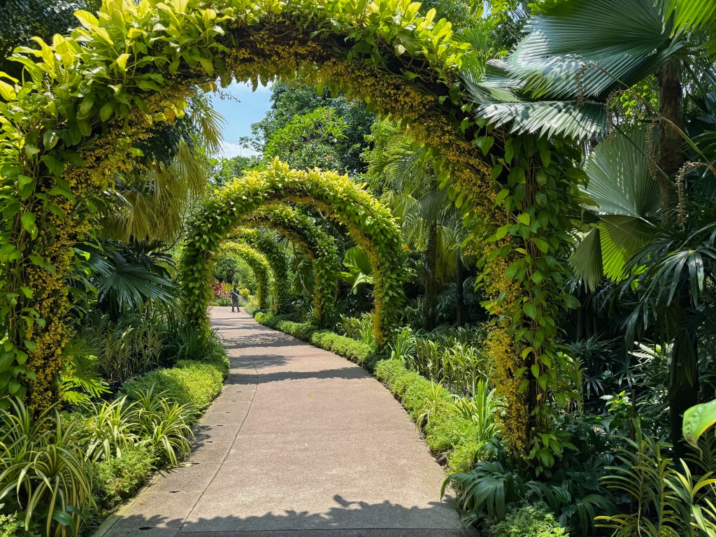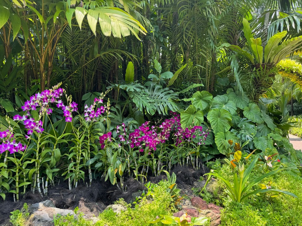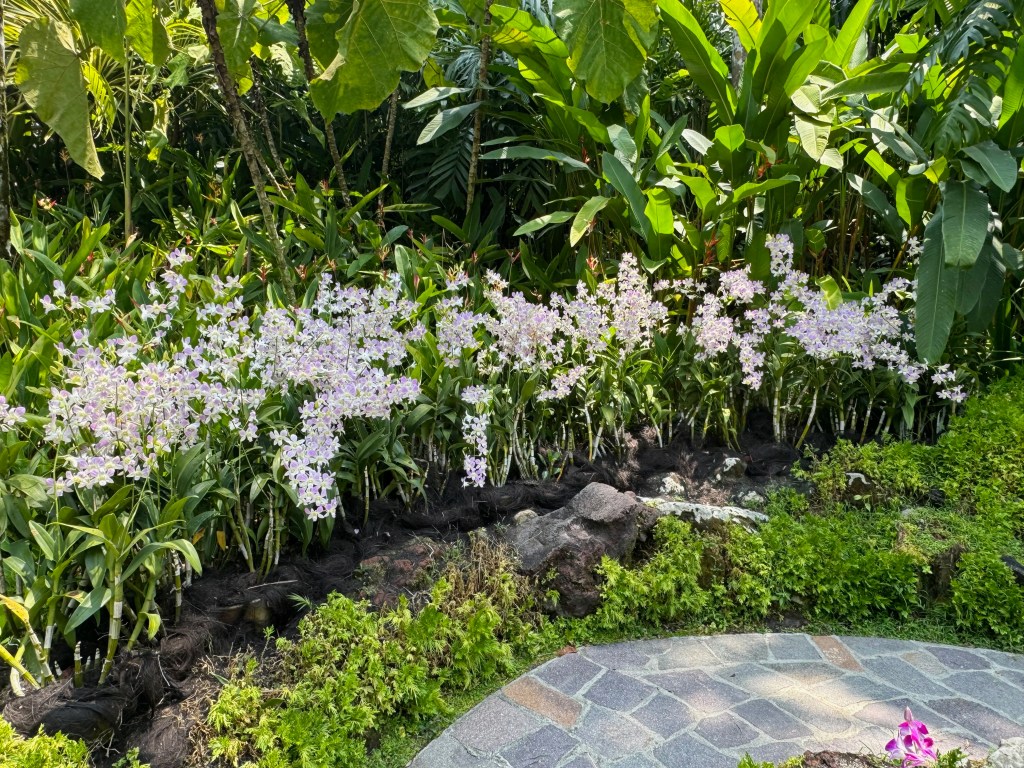 I left the tour bus at the National Botanical Garden stop and walked up a small hill to an outdoor place where I could sit in the shade and order some lunch plus a bottle of water to rehydrate. I really was just trying to adjust to the heat by sitting and waiting a bit. I can’t say that it helped much though I did eat most of my food. It was a short walk to the entrance to the Orchid Garden and got in queue to pay for entrance. I walked thru the garden, taking photos of some really pretty flowers and reached the cool temperate collection housed in an air conditioned building. My bandana was completely saturated with sweat by then; I stayed in the building for quite a while to cool off. Eventually I left the building to see more flowers but it did not take long before I headed back to the Botanical Gardens exit and the tour bus stop.
