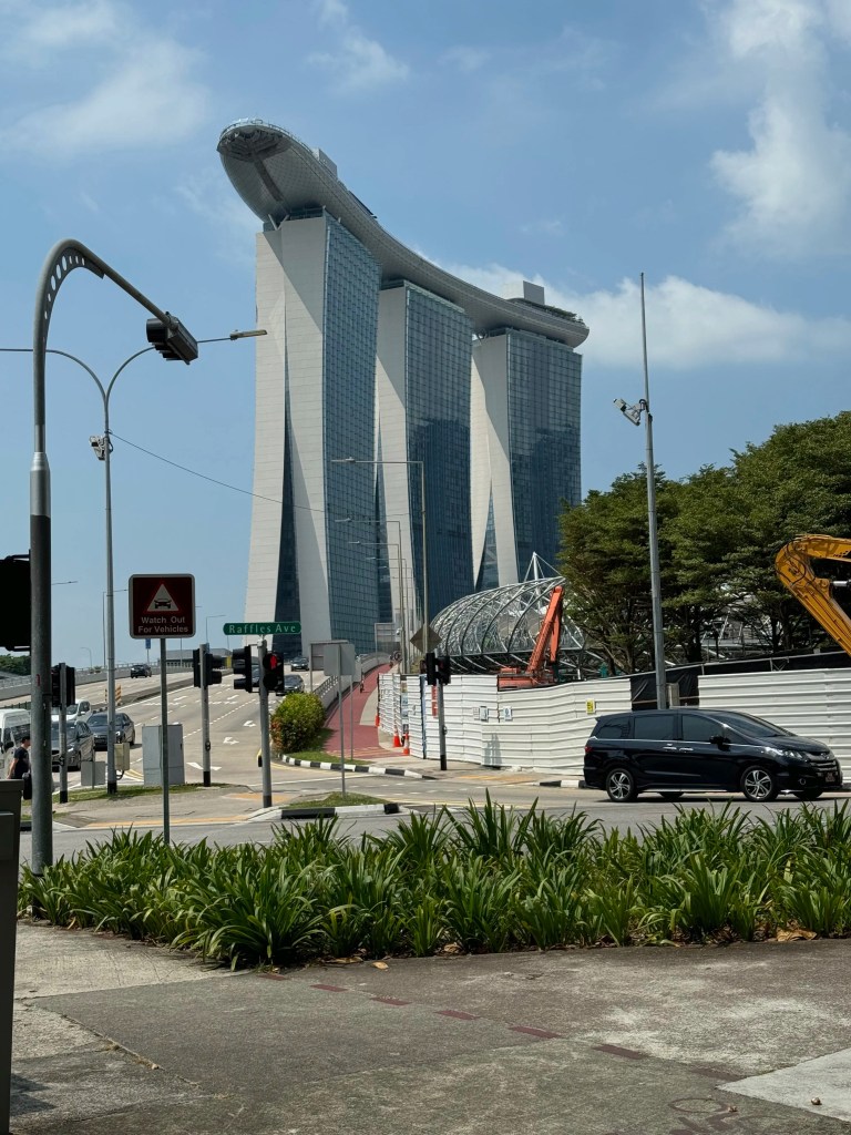 On April 7th, I got up after having slept for nearly twelve hours; I had not realized that I was that tired. I knew my knee was not in shape for a lot of walking so my plan was to use my tourist Go pass to join the Big Bus Hop On-Hop Off tour bus by Raffles Hotel and see a bit of the city. My online investigation of the bus route showed me that the yellow route would also help me achieve one of my Singapore goals – a visit to the National Orchid Garden. After another strange breakfast, I headed over to a bus stop I’d seen by Raffles on my first day which seemed to be the place where the Big Bus stopped. It was sunny, very hot and humid outside and I was sweating a lot after walking 5 blocks. I had the Big Bus app on my phone running and boarded a bus which I thought belonged to Big Bus but it was actually run by another tour company in Singapore. The driver tried to explain the problem to me in fragmented English but I did not understand him. He did let me ride to his next stop where I could tell that I was not on a Big Bus tour. The short ride had cooled me off some but then I had a walk to the real Big Bus stop – not a very long distance but with the heat plus the humidity, I was dripping by the time I reached the right place, stop #1 on the Big Bus route. My bandana was nearly saturated with sweat from my wiping my face and neck. Fortunately, the stop was shaded from the sun and a breeze blew occasionally while I waited. The bus came eventually; I found a spot on the lower air-conditioned level of the double decker bus. I did not want to sightsee on foot in the heat – “Mad dogs and Englishmen go out in the midday sun” – though I did take photos as we moved thru town (https://www.phrases.org.uk/meanings/mad-dogs-and-englishmen.html). Singapore is so different from anywhere else I have been before on this trip: Singapore is more crowded than the cities of Europe, more wealthy than Istanbul, Cairo or Amman and bustling with an energy which seemed insane given the hot weather.