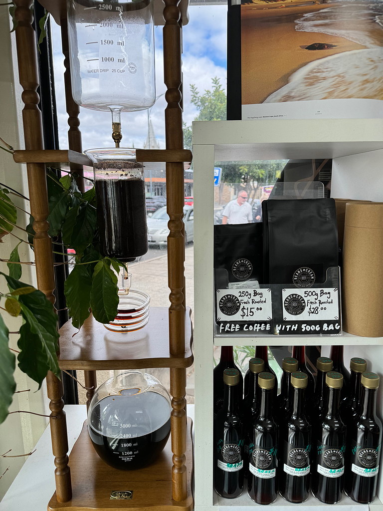 We stopped in Tanunda, one of the first German settlements in the area for coffee. I walked around town a bit, found coffee and my kind of cold brew apparatus with a proper sized flask…